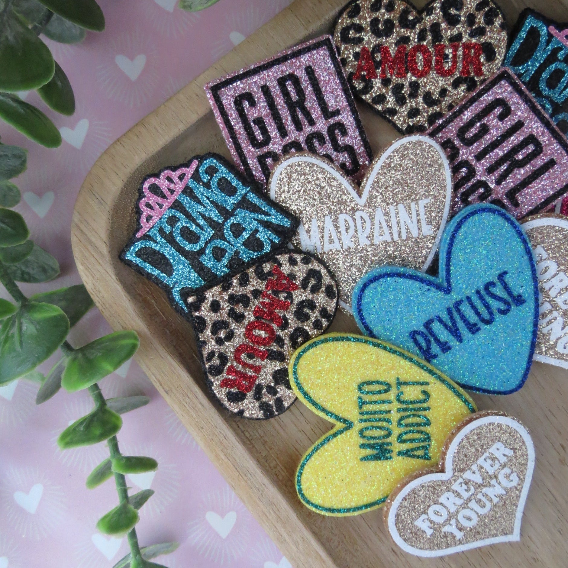 Broche pailletée "AMOUR LEO"